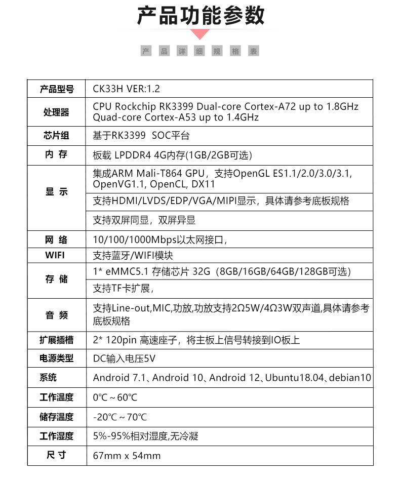 CK33H核心板 VER1.2规格表