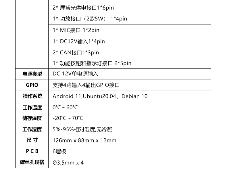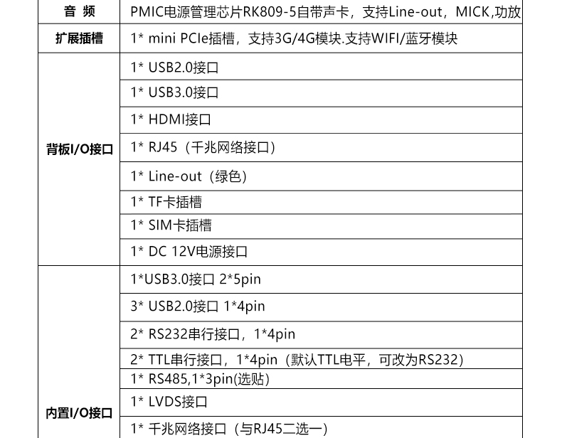 RK36B VER1.1主板规格表
