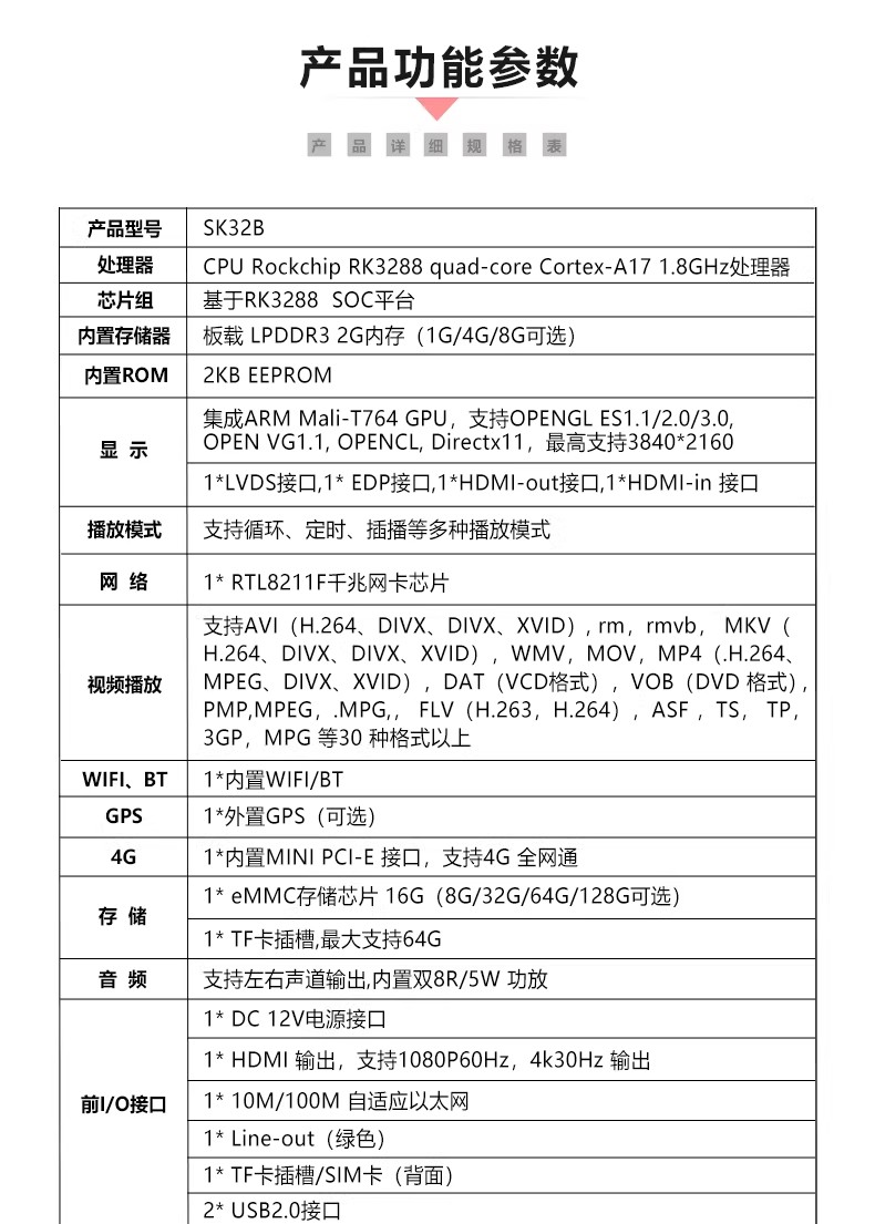 ◆CPU Rockchip RK3288 quad-core Cortex-A17 1.8GHz处理器
