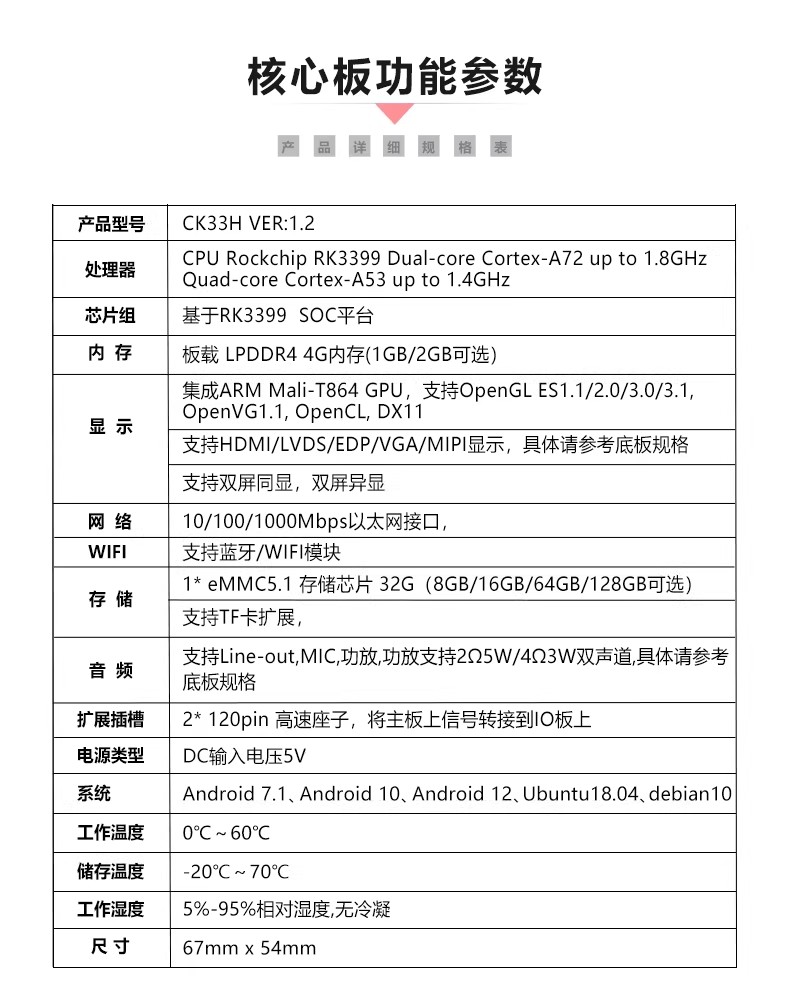 RK3399 1.8GHz/6核 4G+32G