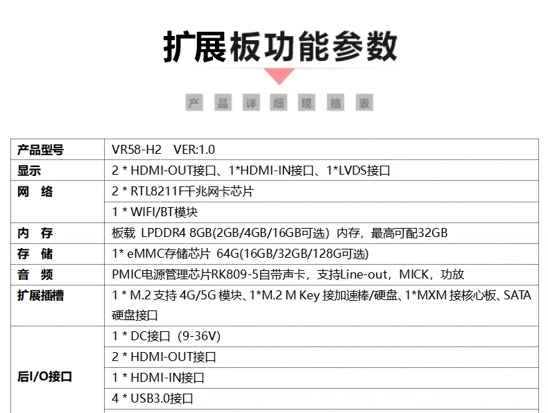 ◆1 * M.2支持4G/5G模块、1*M.2 M Key接加速棒/硬盘、1*MXM接核心板、SATA硬盘接口