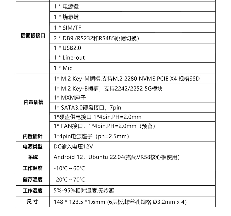 ◆1 * M.2支持4G/5G模块、1*M.2 M Key接加速棒/硬盘、1*MXM接核心板