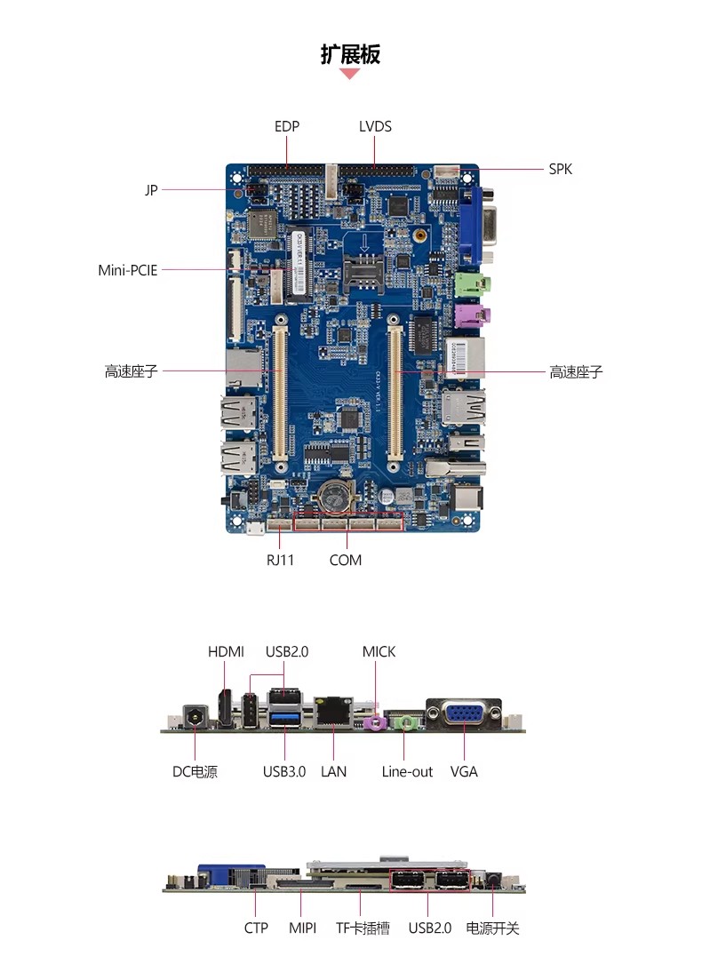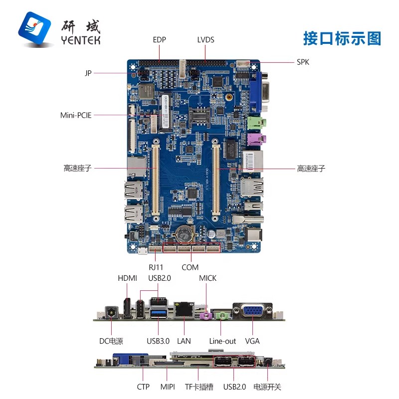 ◆1* VGA接口,1*HDMI接口,1*LVDS接口,1*EDP接口,1*MIPI接口