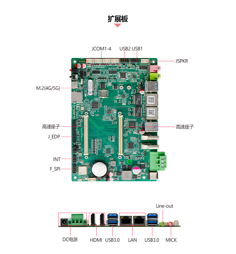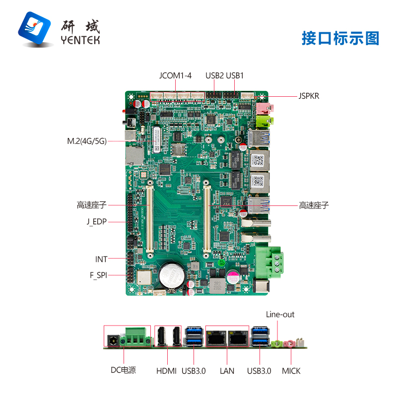 ◆1* M.2插槽,支持M.2 B-KEY 2242 /2252 4G/5G模块
