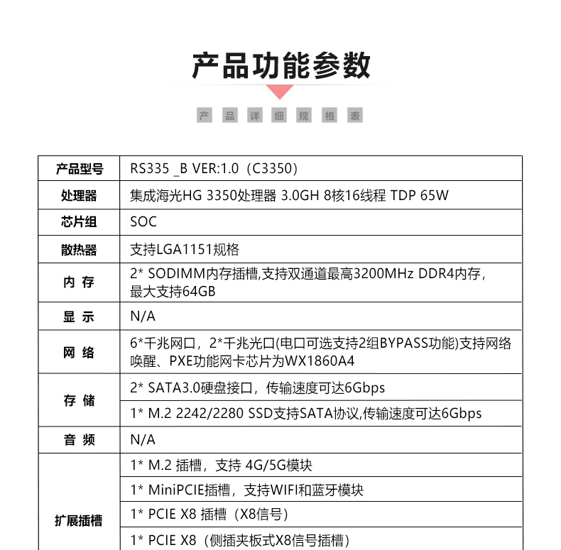 ◆集成海光HG C3350处理器 3.0GHz 8核16线程 TDP 65W