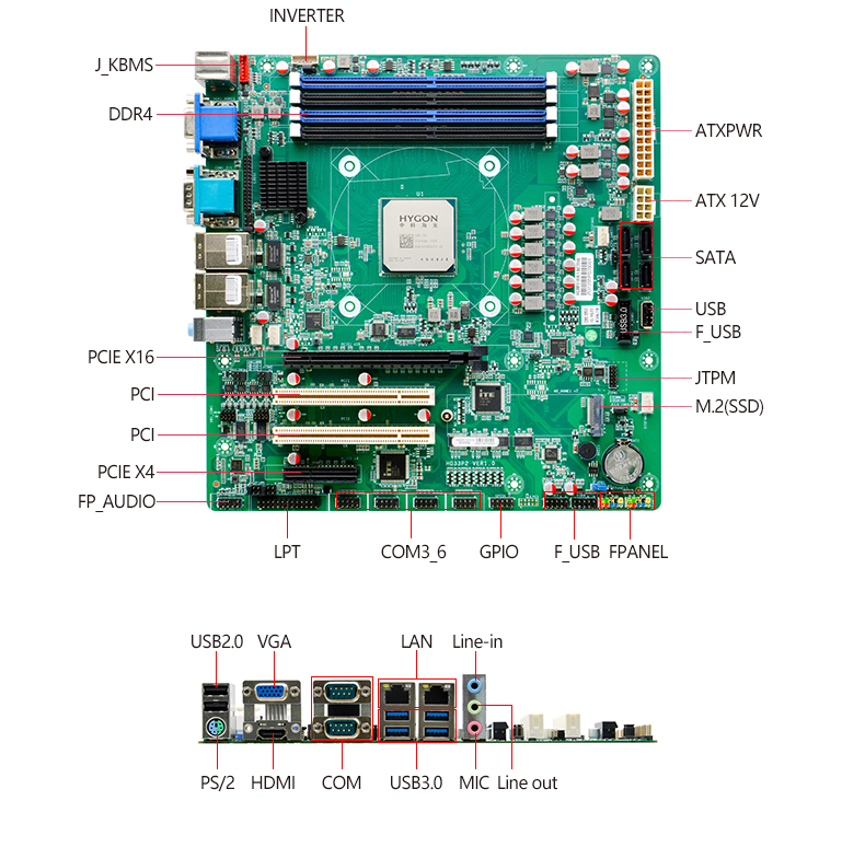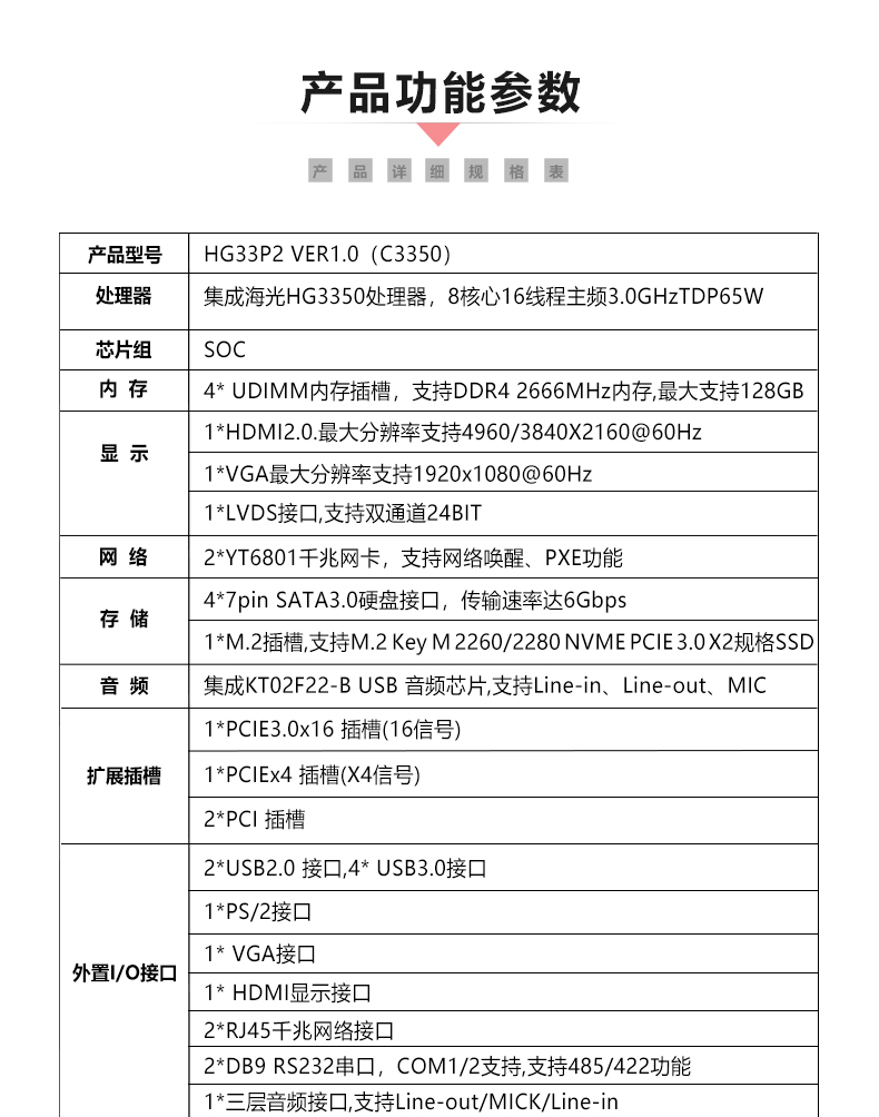 ◆集成海光HG3350处理器, 8核心16线程主频3.0GHz TDP 65W