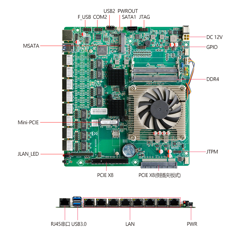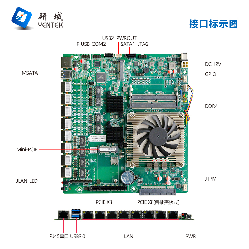 ◆1* PCIE X8 插槽(与Mini-PCIE二选一,可通过改电阻切换支持此功能扩展)
