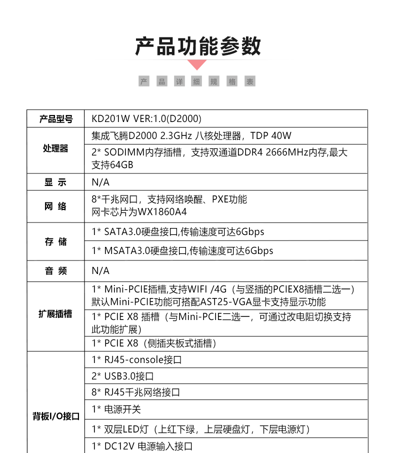 ◆集成飞腾D2000 2.3GHz 八核处理器,TDP 40W