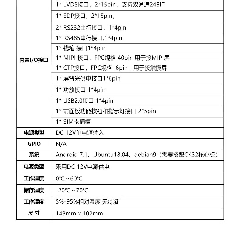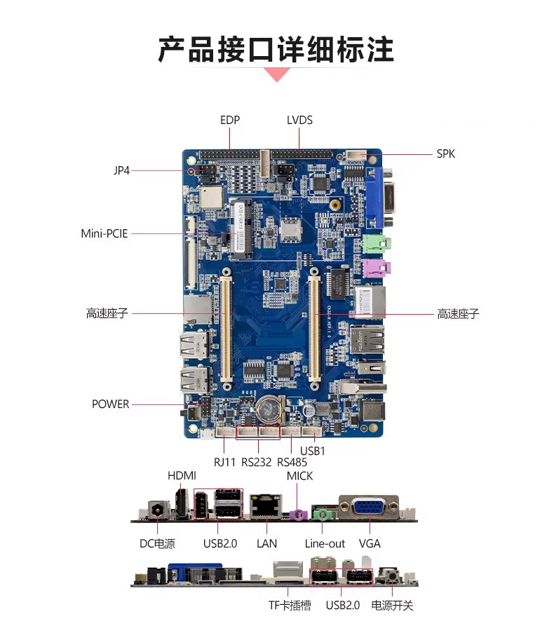 ◆1* VGA接口,1*HDMI接口,1*LVDS接口,1*EDP接口,1*MIPI接口