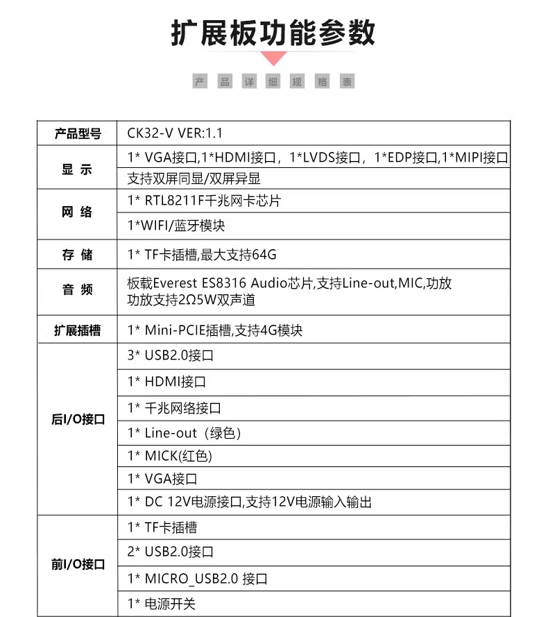 ◆板载Everest ES8316 Audio芯片,支持Line-out,MIC,功放支持2Ω5W双声道